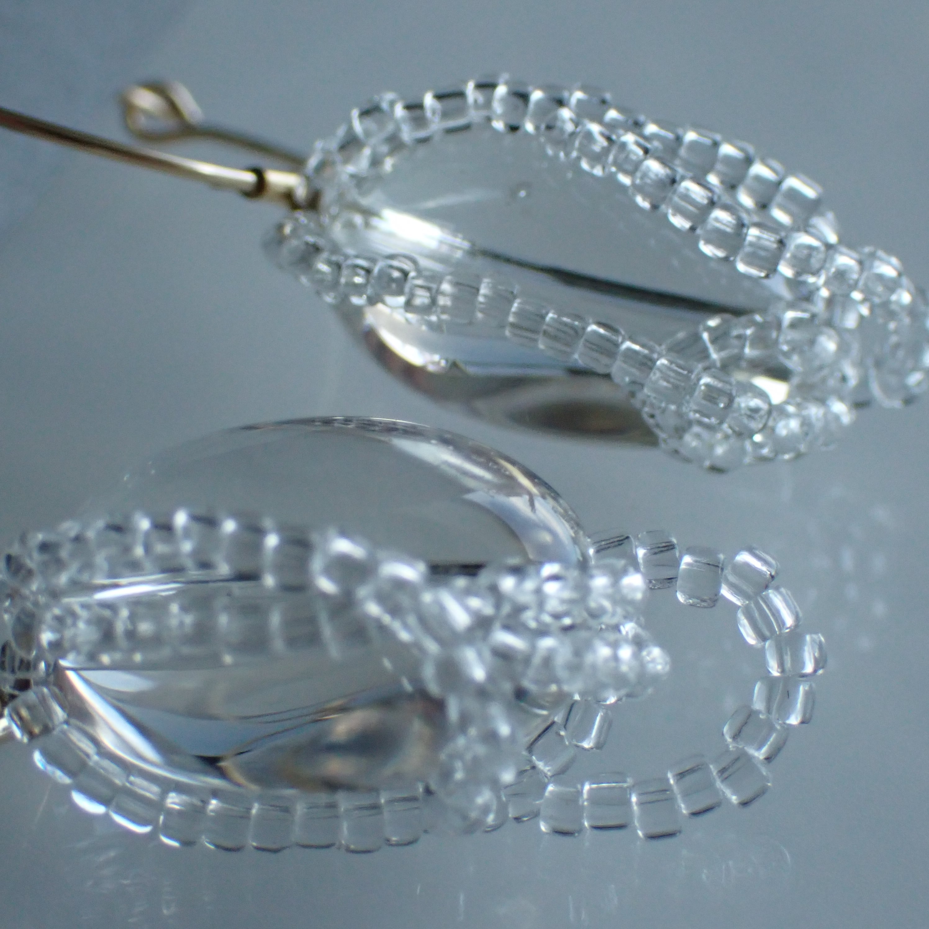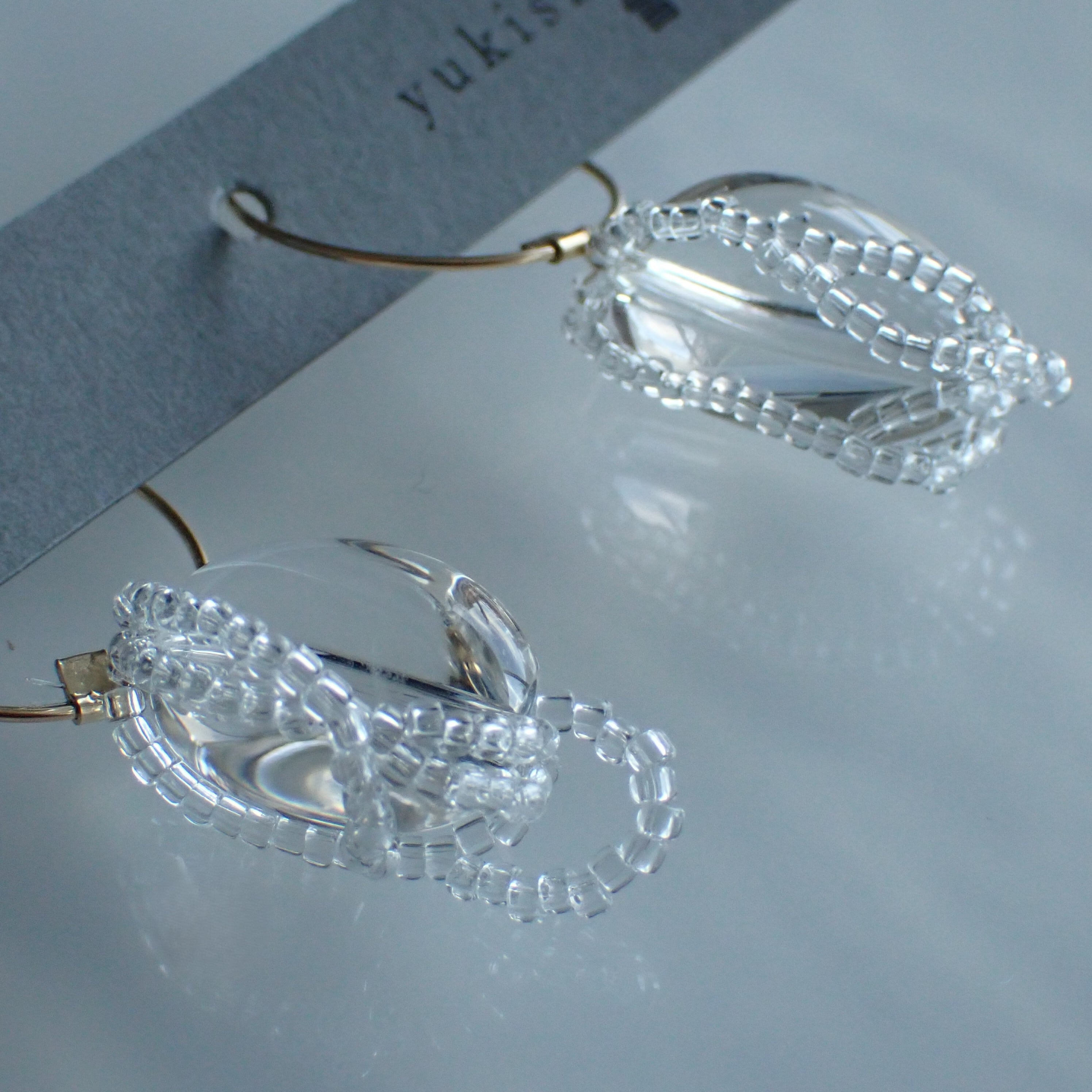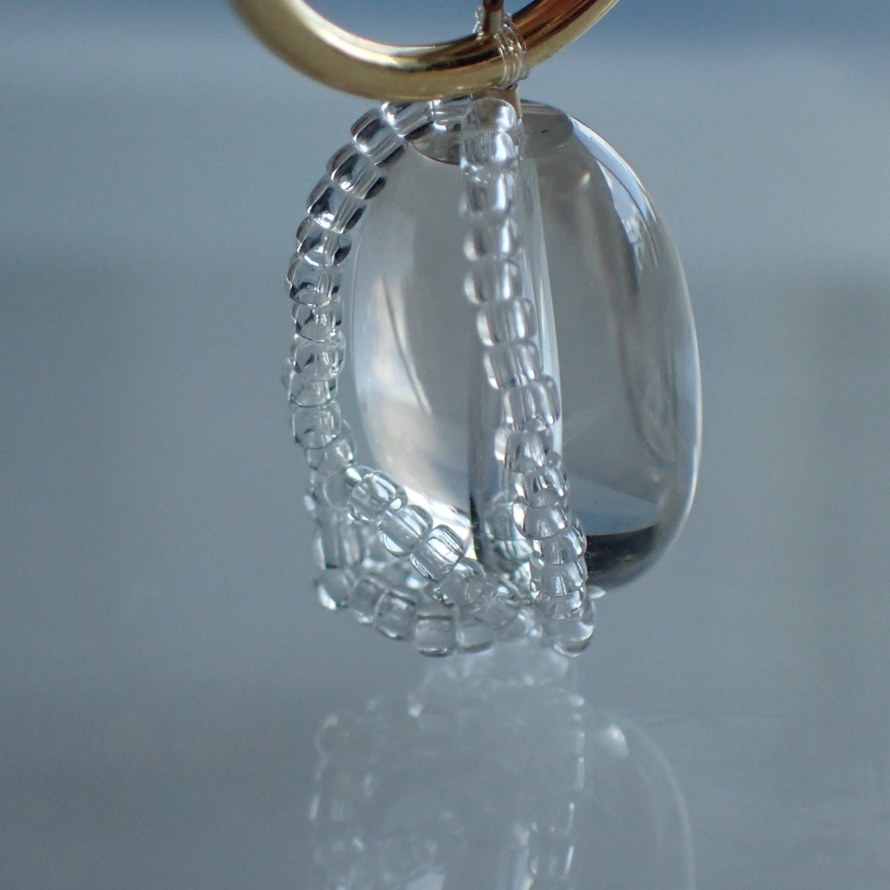 透明感の強い水晶の周りに流れるようなクリアカラーのビーズが軌道を描く